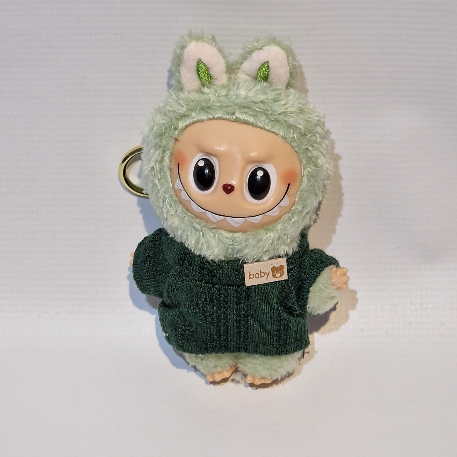 Supermīļa rotaļlieta ar lielām acīm un omulīgu džemperīti. Vari ņemt līdzi kā piekariņu pie somas vai vienkārši rotaļāties. Perfekta dāvana Labubu faniem! 💖✨