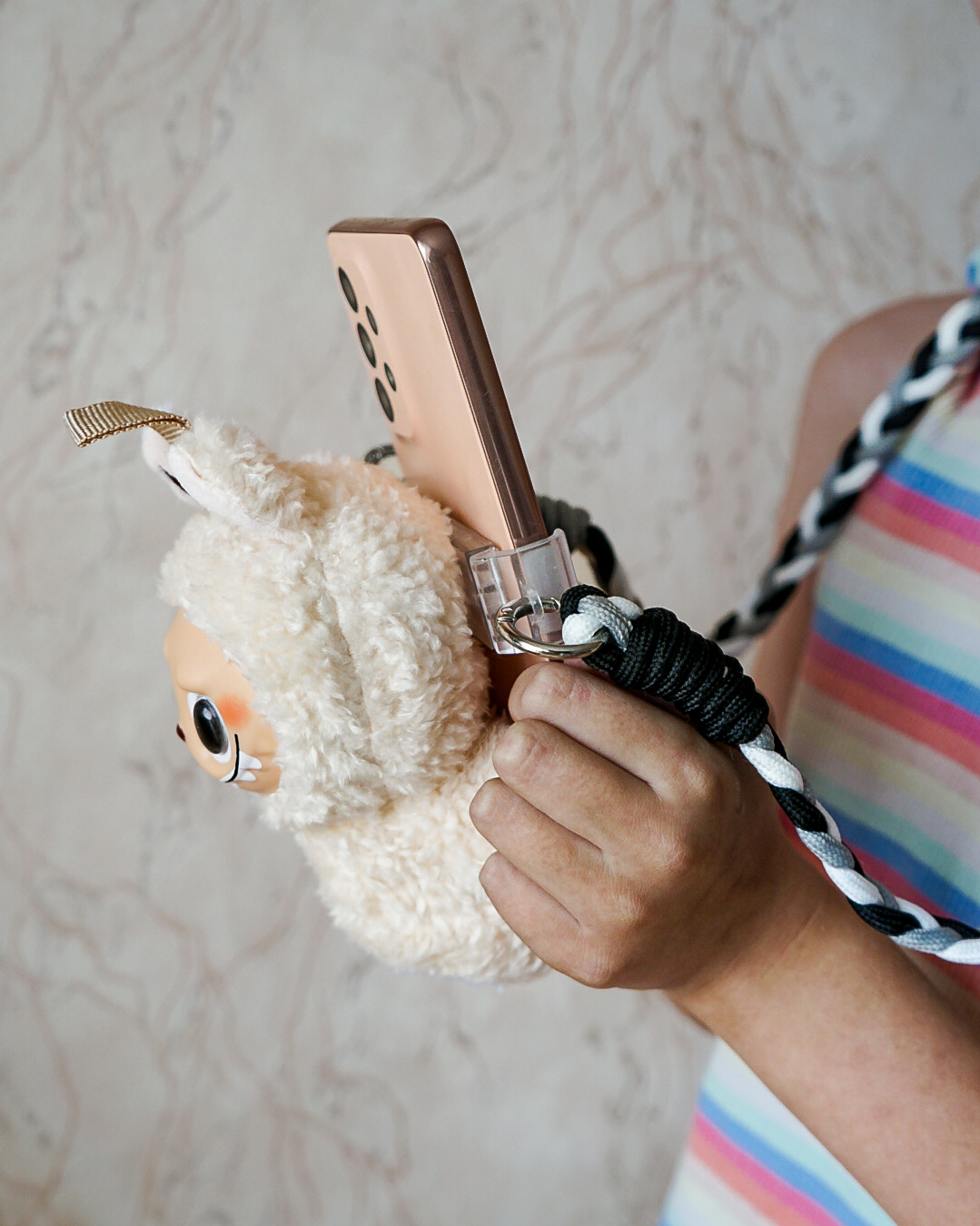 Padari savu ikdienu jautrāku un ērtāku ar Labubu tālruņa turētāju – ideālu aksesuāru, kur rotaļīgums satiekas ar praktiskumu. Siksniņa izgatavota no izturīga pīta neilona, kas kalpos ilgi un uzticami. Regulē garumu, kā vēlies un izcelies ar mīlīgo Labubu, kas piešķirs īpašu šarmu katram solim.